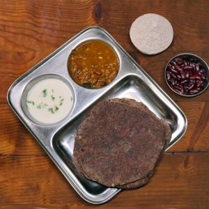 Single Piece Paneer Schezwan Paratha with Sabji & Raita – 100% Whole Wheat, No Maida